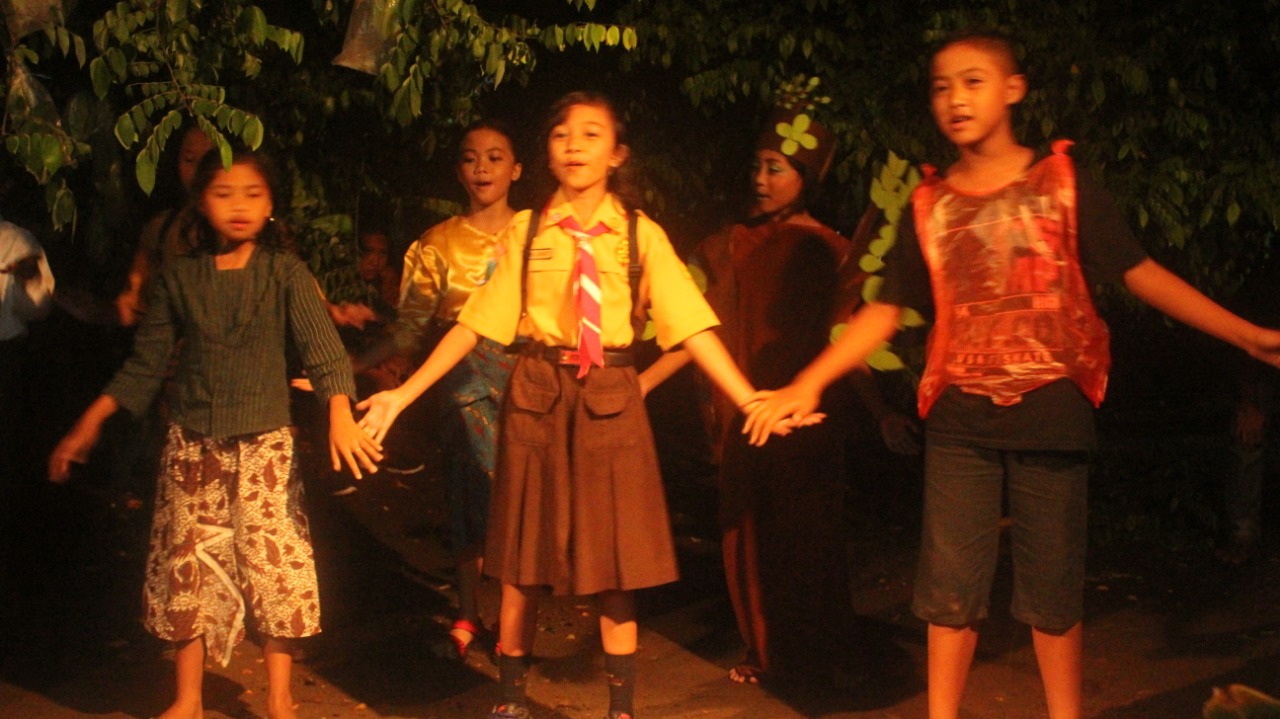 Halaman rumah Bu Ani di Kelurahan Karagsari, Kota Blitar, Rabu (30/1/2019) malam, diubah menjadi tempat pementasan teater arena. Di sana, sejumlah pelajar sekolah dasar (SD) yang tergabung dalam Sanggar Waseso Nugroho dan Teater Tali Usil Unisba Blitar menunjukkan aksi kebolehannya bermain teater anak-anak.